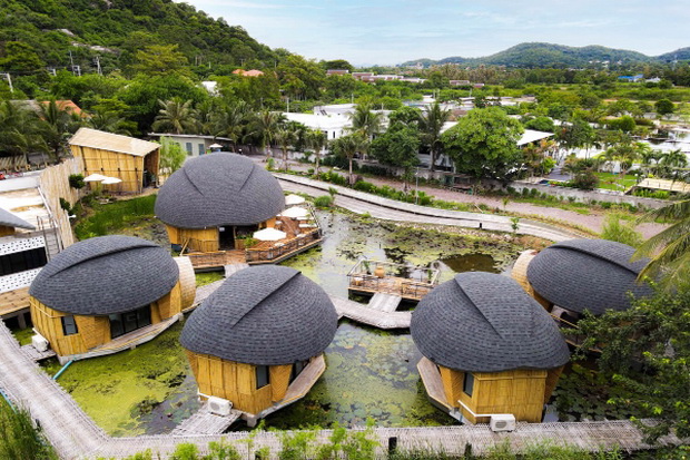Но, не е само идеална дестинација за еко-туризам, бидејќи овој оригинален залив има и ресторан со органска кујна, локална занаетчиска продавница за сувенири и домаќинско сместување (но на посебен начин) кое се наоѓа во бујна природна област на егзотичниот Тајланд. Станува збор за една од главните туристички атракции во областа, а „богатата понуда“ на природата вклучува диви птици, големи дрвја и не помалку атрактивно езерце со цветови од лотос, што послужило како главна инспирација за дизајнот на целиот проект. За да го смисли името на овој необичен дизајн, архитектот Sarawoot Jansaeng-aram го користел името на локацијата, односно тајландскиот збор за планина („khao“), додека другиот дел од името се однесува на желка („tao“) . Самиот поглед на овие куќи покажува дека архитектот бил инспириран од оклопот на желките, додека материјалите се внимателно избрани за да создадат избалансирана хармонија со природната средина. Така, кровови од шиндра речиси незабележливо се спојуваат со површината на тлото, која е направена од чакал и камен, што во исто време дополнително го нагласува изгледот на куќата на желките. Другиот главен материјал што се користел за изградба на кровот и ѕидот е бамбусот, кој е избран поради неговата неверојатна способност за виткање. Користејќи ги знаењата и техниките на локалните занаетчии, архитектот проектирал голем простор со висок кров и стратешки позиционирани прозорци за да се постигне природна вентилација, додека опремата во форма на соларни панели исто така делумно е користена на некои кровови. На овој начин, електричната енергија произведена во текот на денот од природна светлина мудро се користи за да се осветли целиот комплекс во текот на ноќта. Пренесува porta3.mk